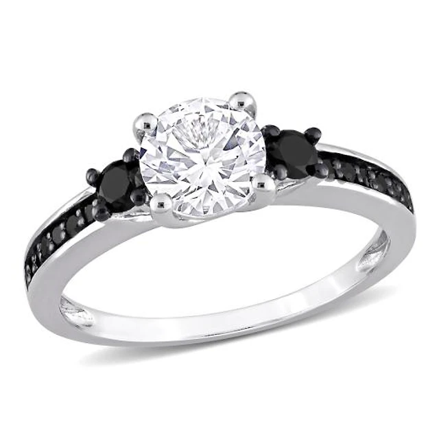 Julianna B Sterling Silver Created White Sapphire & Black Diamond Ring
