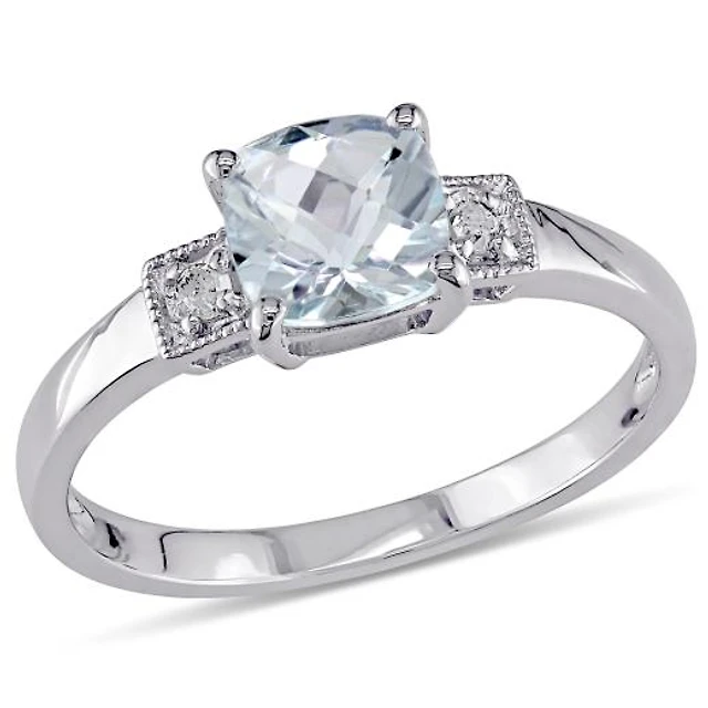 Sterling Silver Blue Topaz & Diamond Ring