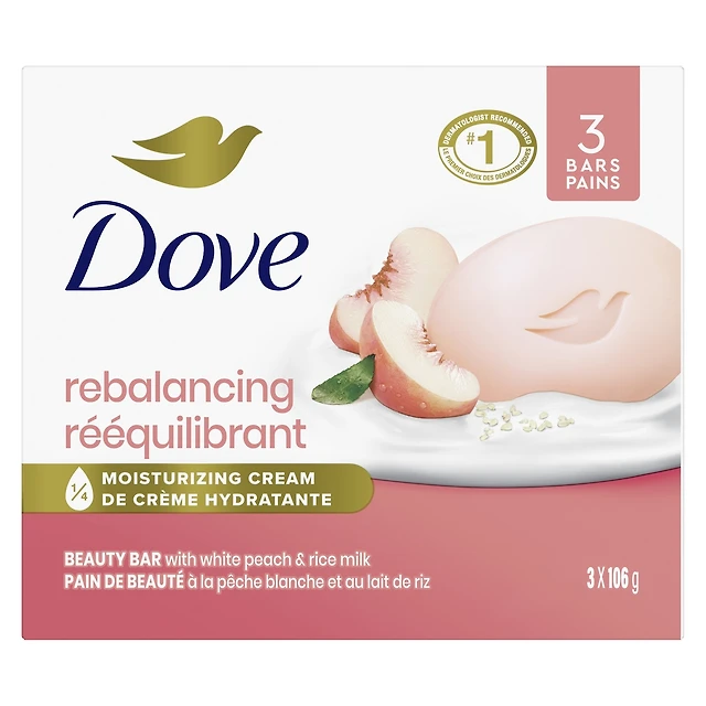Beauty Bar Gentle Cleanser Moisturizes To Help Rebalance Skin Peach and Rice Milk Gentle Bar Soap Cleanser Made with 1/4 Moisturizing Cream