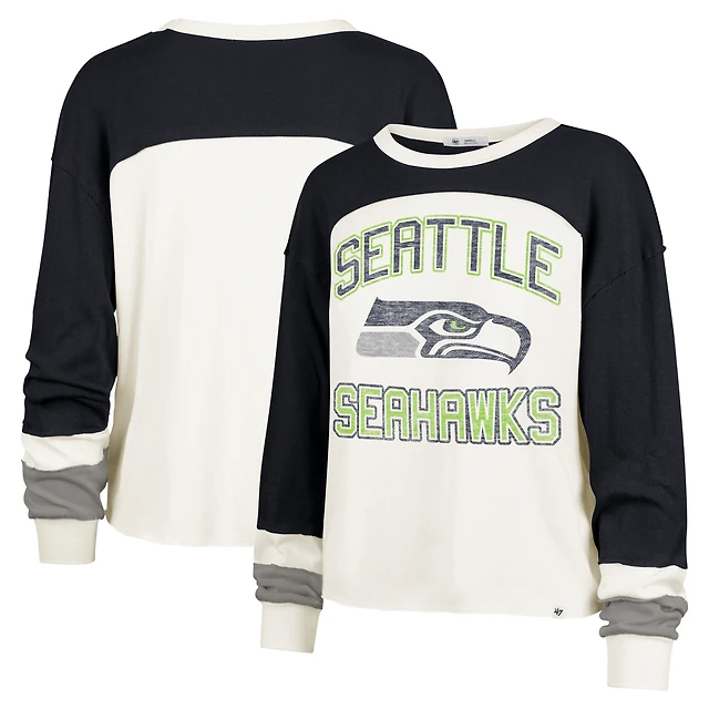 Women's Mitchell & Ness Cream Seattle Seahawks Throwback Logo 3.0 Pullover Sweatshirt