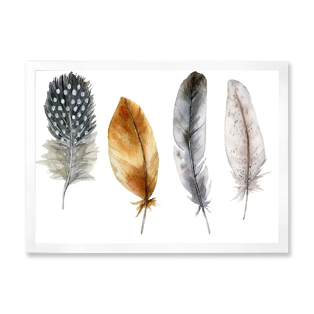 Boho Feather Orange & Blue Striped Polka Dots Canvas Wall Art Print Panels