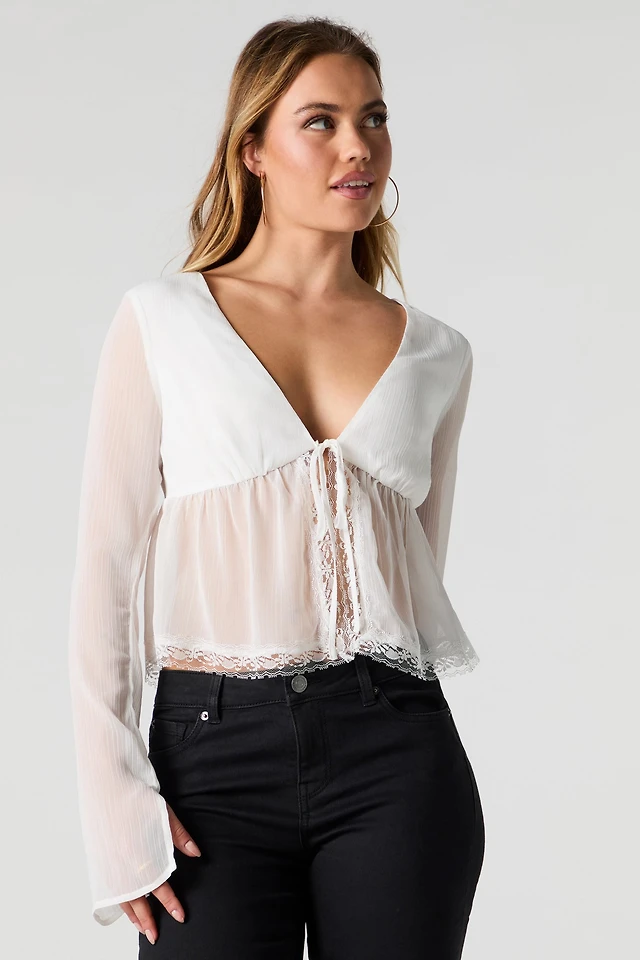 Haut ruché à manche longue avec attache l'avant