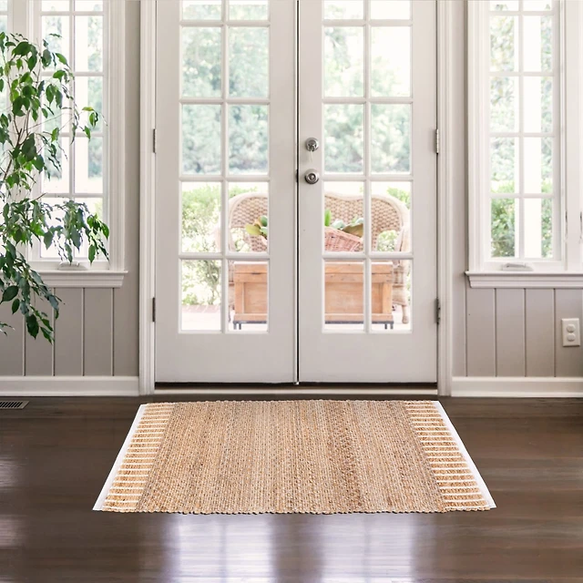 Hand Woven Eco Jute Rug - Edged Stripe, Black/Natural