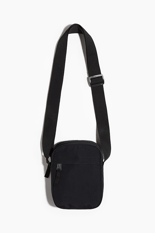 Ardene Two-Compartment Crossbody Bag in Black | Faux Leather/Polyester/Nylon