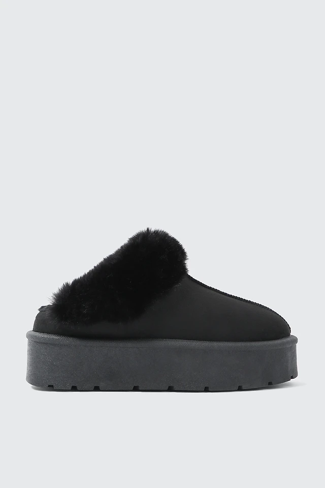 Ardene Faux Sheepskin Clogs with Faux Fur Trim in Black | Size | Faux Suede | Eco-Conscious