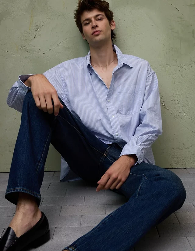 AE77 Premium Poplin Long-Sleeve Button-Up Bubble Shirt