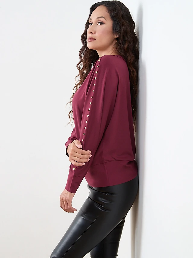 Petite Long Sleeve Hardware-Detail Top