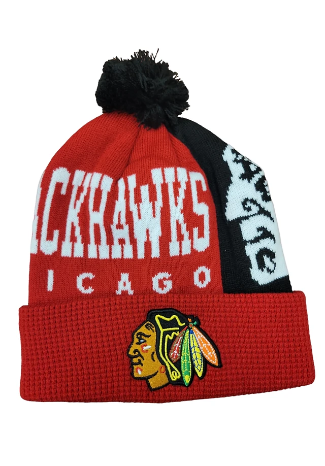 NHL Youth Knit Hat Impact Cuffed Pom Blackhawks