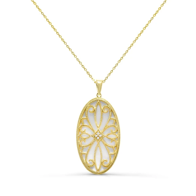 10K Yellow Gold Mother of Pearl & Created White Sapphire Pendant