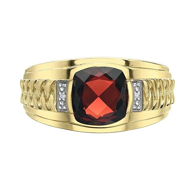 10K Yellow Gold Garnet and Diamond Men's Ring