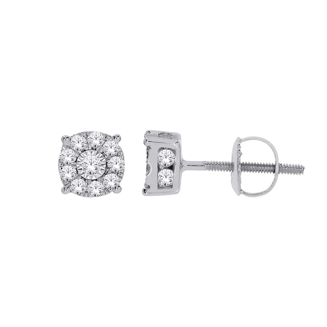 1.00 CT. T.W. Diamond Cluster Stud Earrings in 14K White Gold