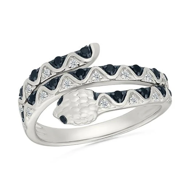 0.18CTW Black & White Diamond Snake Pendant in Sterling Silver