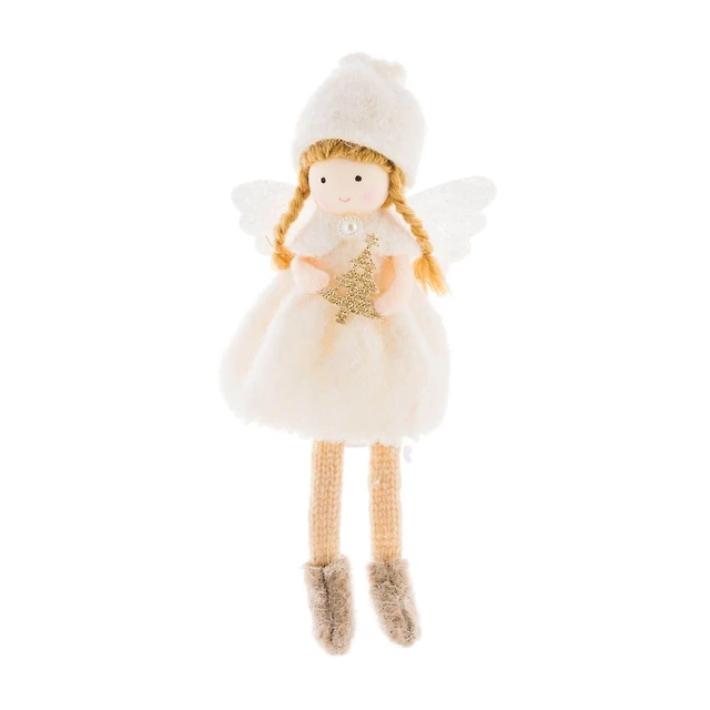 Sitting White Fabric Dancer Girl Doll Gold Snowflake, Pack of 10