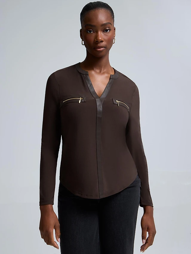 Vegan Leather Detail Bouclé Jacket