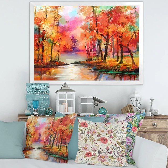 Colorful Autumn Trees by The Lake in Autumn Canvas Wall Art Print