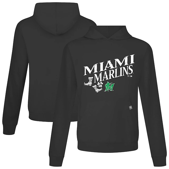 Men's Levelwear Black Miami Marlins St. Patrick's Day Relay Boots Pullover Hoodie