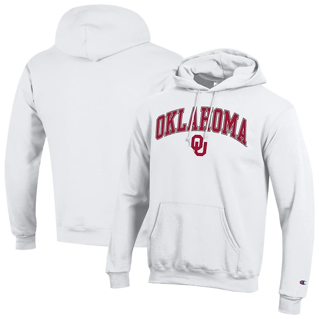 Men's Champion White Oklahoma Sooners Arch Over Logo Pullover Hoodie