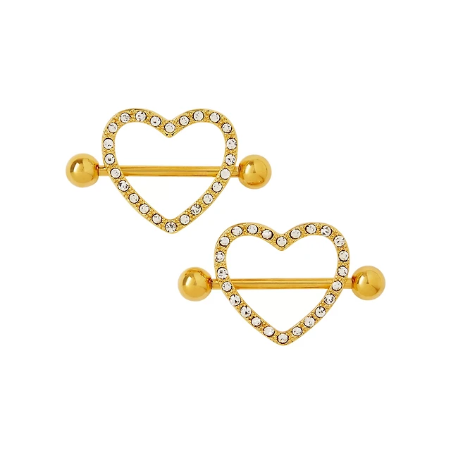 CZ Heart Gold-Tone Nipple Shields - 14 Gauge