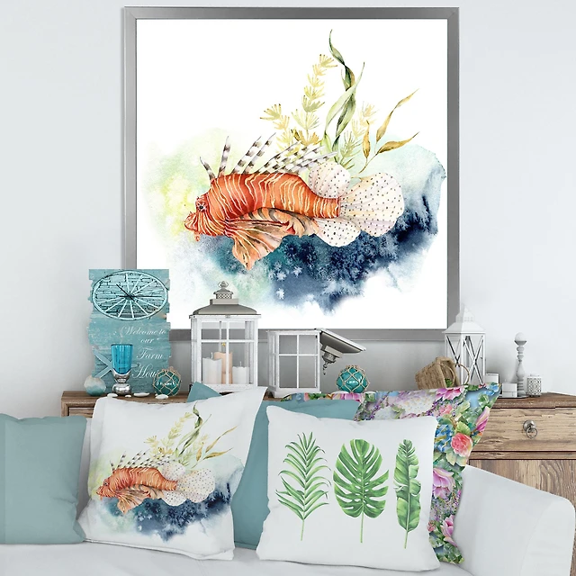 Lionfish and Kelp with Coral Reef Laminaria Canvas Wall Art Print