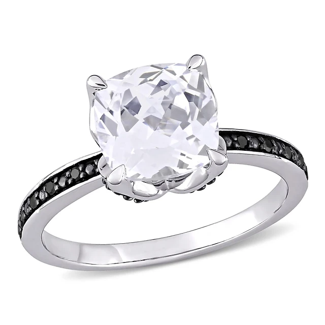 Julianna B Sterling Silver Black Sapphire Created White Sapphire & Diamond Ring