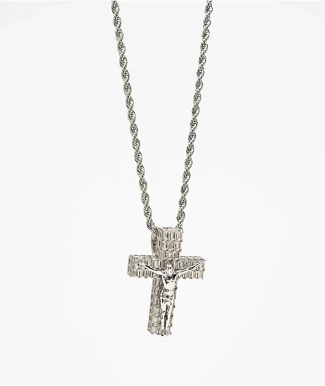 The Gold Gods Flooded Crucifix 22" White Gold Rope Chain Necklace