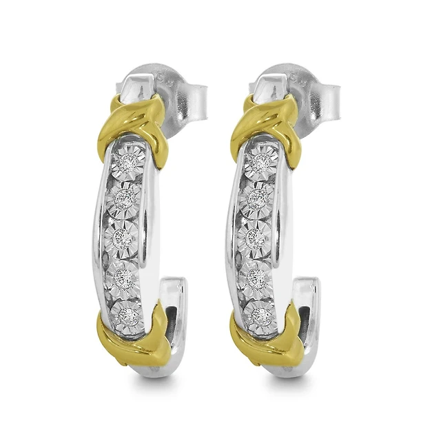 10K White & Yellow Gold Sapphire & 0.01CTW Diamond Earring