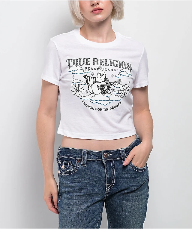 True Religion Crystal Buddha Burnout White Crop T-Shirt