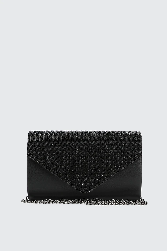 Ardene Rhinestone Envelope Clutch in Black | Faux Leather/Polyester