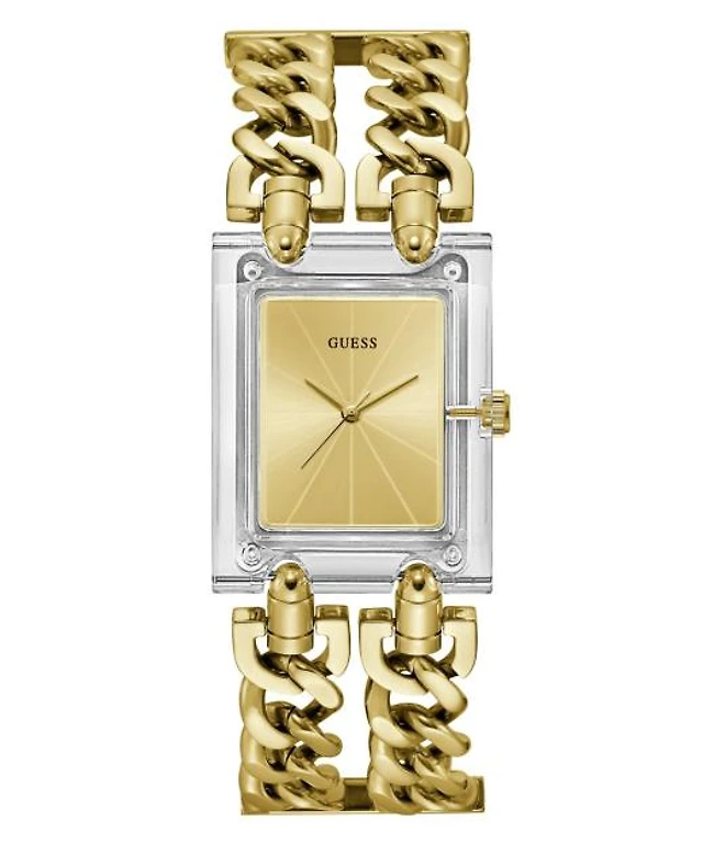 Guess Women's Gold Tone Blue Strap Crystal Array Watch
