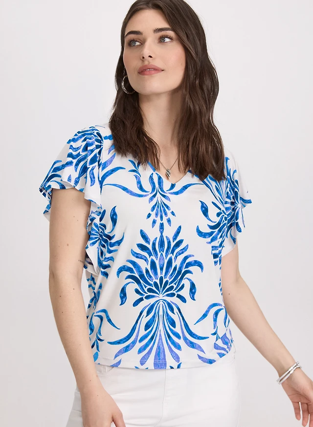 Abstract Cap Sleeve Top