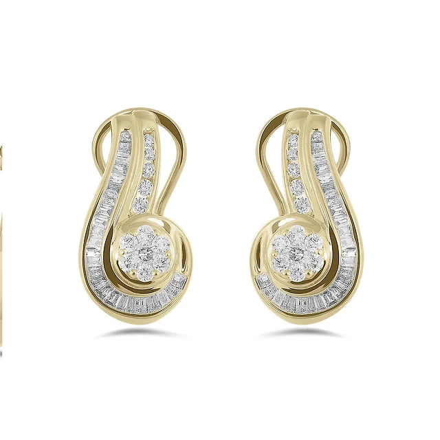Drop Earrings with Cultured Freshwater Pearl & Diamond in 10kt Yellow Gold