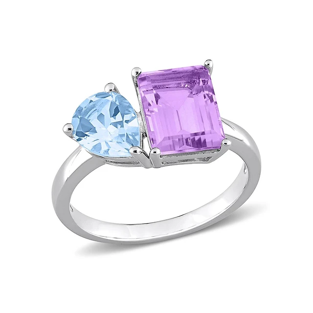 Julianna B Sterling Silver Sky Blue Topaz and White Ring