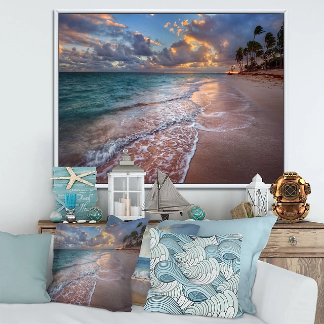 Pastel with Dark Blue Pink & Gray Spots Canvas Wall Art Print