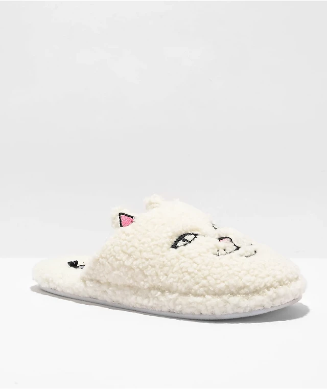 RIPNDIP Nerm Face White Fuzzy Slide Slippers