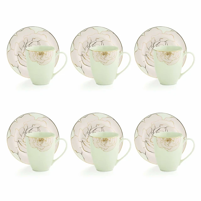 Rose 12-Piece Bone ChinaCups and Saucers Set by Brilliant