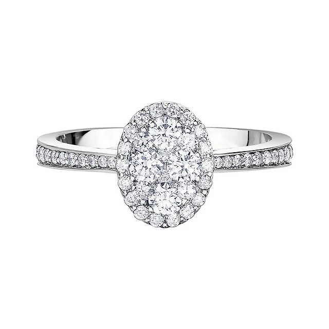 0.31 Carat TW Oval Cut Diamond Halo Engagement Ring in 14kt White Gold