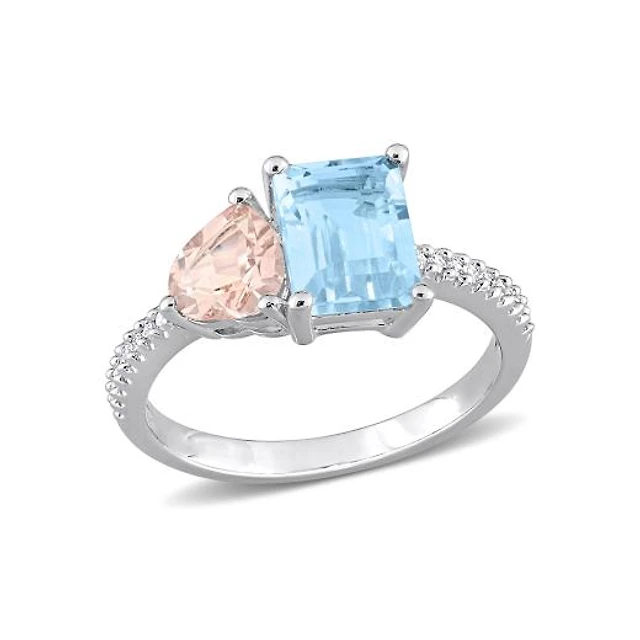 Julianna B Sterling Silver 0.10CTW Diamond, Blue Topaz & Morganite Ring