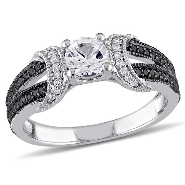 JULIANNA B Sterling Silver Created White Sapphire, Black & Diamond Ring