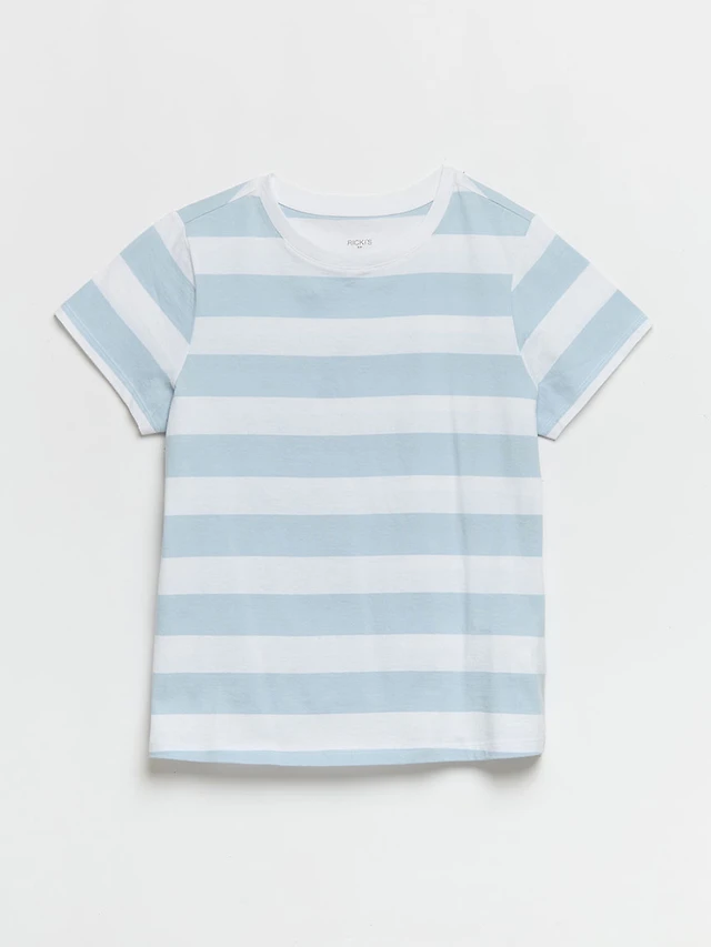 Short Sleeve Ribbed Crew Neck Top Azure Blue
