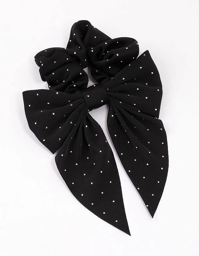 Black Diamante Satin Drop Hair Bow Clip