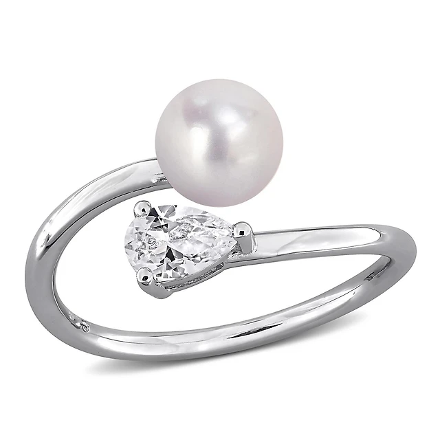 Sterling Silver 8-8.5mm Freshwater Pearls & Cubic Zirconia Earrings