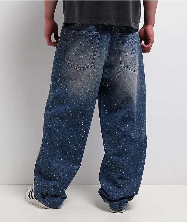 Broken Promises Enamored Rhinestone Blue Wash Loose Fit Jeans