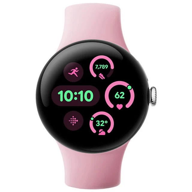 Koodo Google Pixel Watch 3 41mm LTE Polished Silver Aluminum Case w/Rose Quartz Active Band - Monthly Tab Payment