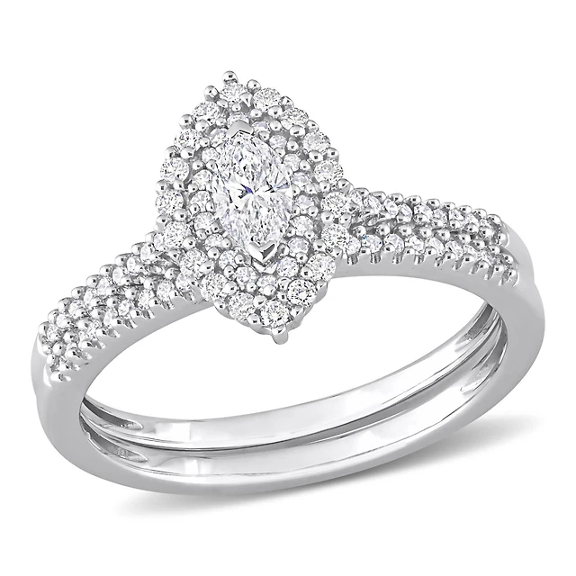 New Brilliance 10K White Gold Lab Grown 1.00CTW Diamond Halo Pendant