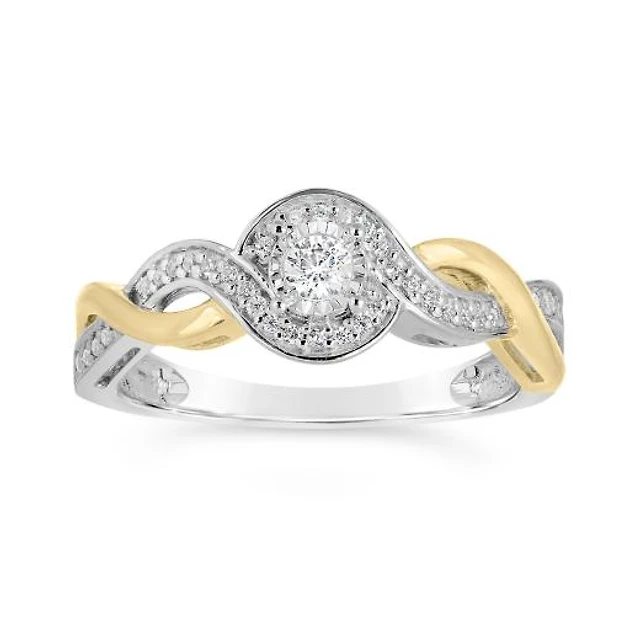 10K White & Yellow Gold 0.20CTW Diamond Twist Promise Ring