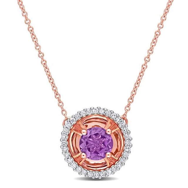 Julianna B Rose Plated Sterling Silver Amethyst and Diamond Pendant
