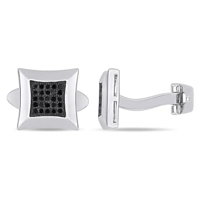 Julianna B Sterling Silver Black Diamond Accent Square Men's Stud Earrings