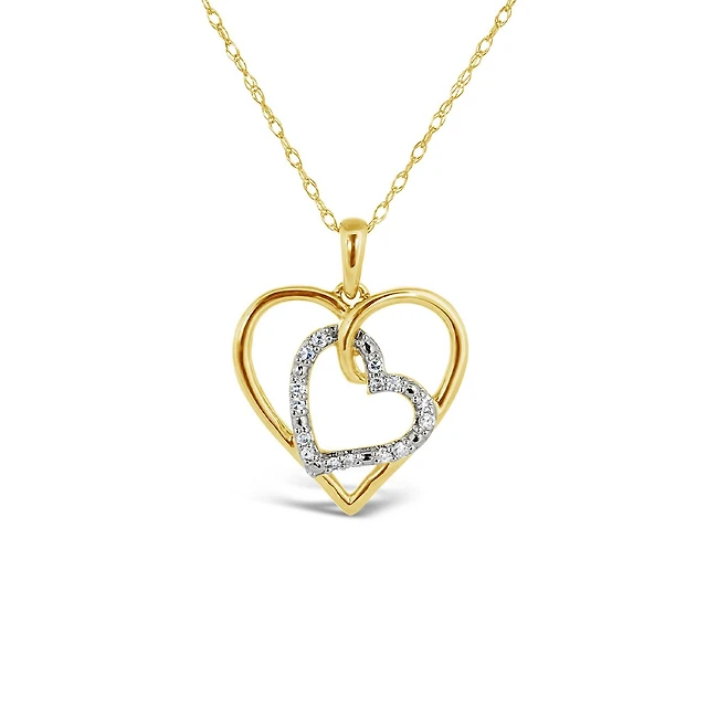 Sterling Silver 10KT Rose Gold 0.10CTW Diamond Heart Pendant