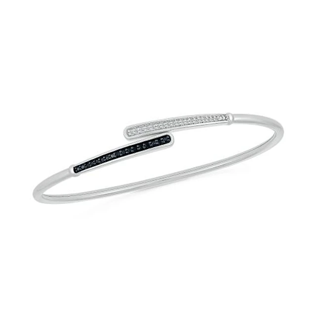 Sterling Silver 0.23CTW Black & White Diamond Bangle