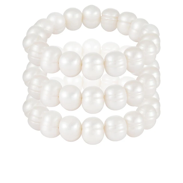 9-10mm White Freshwater Pearl Set Of Three Elastic Bracelets
